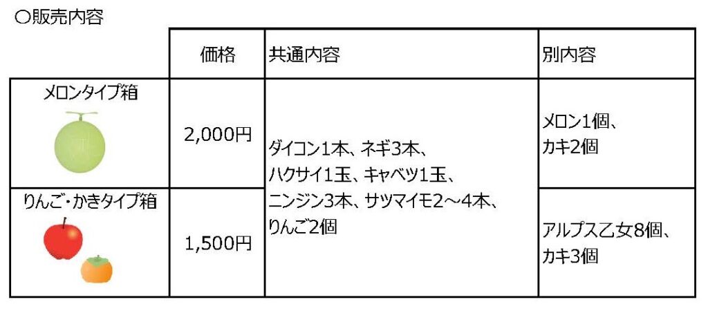 販売予定数:メロンタイプ箱(150箱)、りんご・かきタイプ箱(50箱)