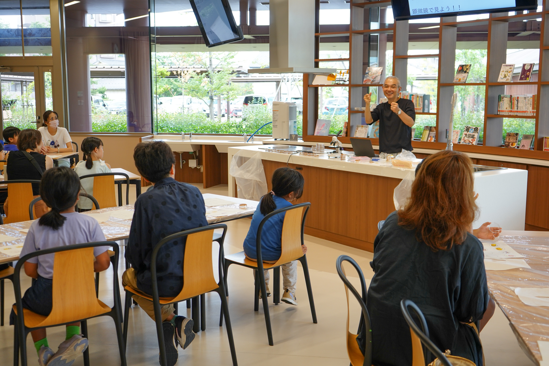 石川県立図書館にて、8月7日にビブリオ・自然のふしぎ研究室「微生物を見る、知る、アートする」(石川県立図書館主催、石川県立大学共催)を開催しました。河井重幸教授(生物資源工学研究所)が講師を担当し、小学生10名が参加しました。