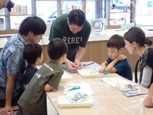 石川県立図書館にて、8月23日にビブリオ・自然のふしぎ研究室「夜の金沢市をとぶ、めずらしいバッタを知ろう」(石川県立図書館主催、石川県立大学共催)を開催しました。弘中満太郎教授(応用昆虫学研究室)が講師を担当し、小学生10名が参加しました。