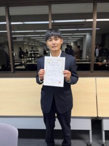 環境科学科4年 鈴木琉斗さん(指導教員:勝見尚也 准教授)が、日本土壌肥料学会中部支部第105回例会(2025年11月10日)において、「水田における被覆肥料由来マイクロプラスチックの浮上量に影響を与える要因」というタイトルで発表し、ポスター賞を受賞しました。