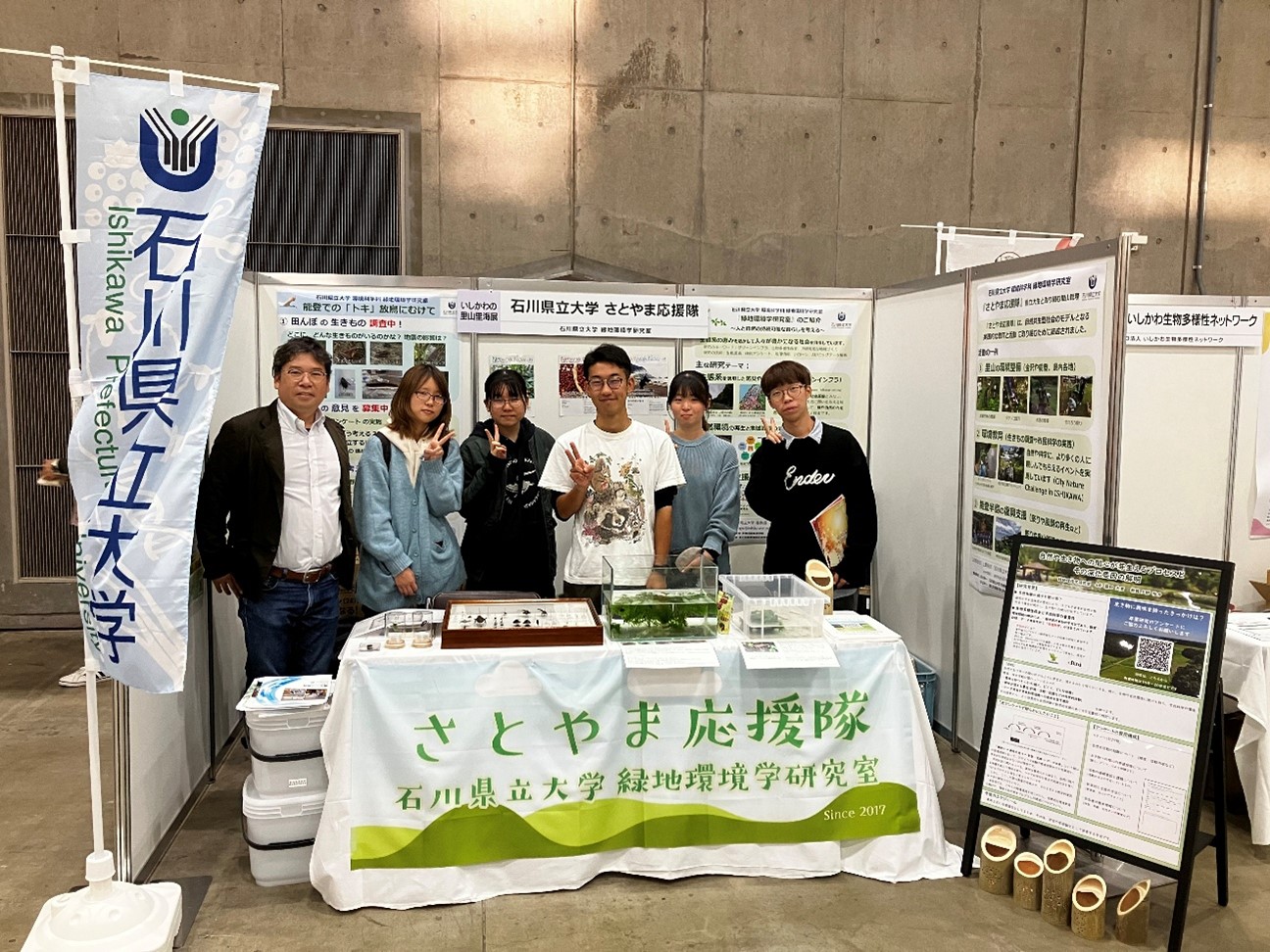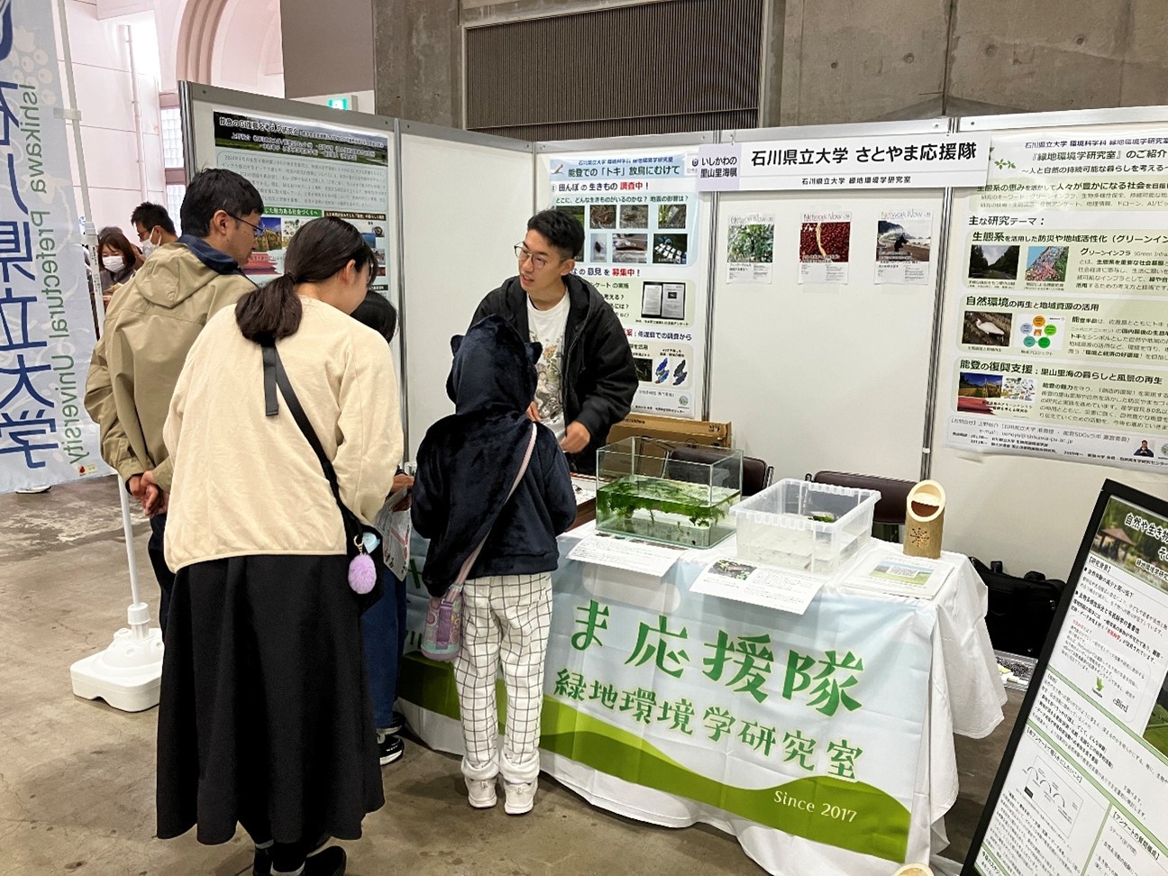 11月1日・2日、石川県産業展示館で開催された「いしかわの里山里海展2025」に、今年も緑地環境学研究室とポケゼミさとやま応援隊が出展しました。本イベントは石川の農林漁業まつりと同時開催され、里山里海の恵みや食、生きものを紹介する恒例行事です。