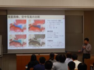 報告会では、本学の教員より全9課題の取り組みが発表されました。農業現場でのスマート農業技術の導入や伝統発酵産業の支援をはじめ、ため池や斜面の災害リスク分析、子どもたちの体力回復プロジェクト、里山里海を活かした創造的復興など、農学系大学の知見を活かした多角的な研究成果が共有されました。