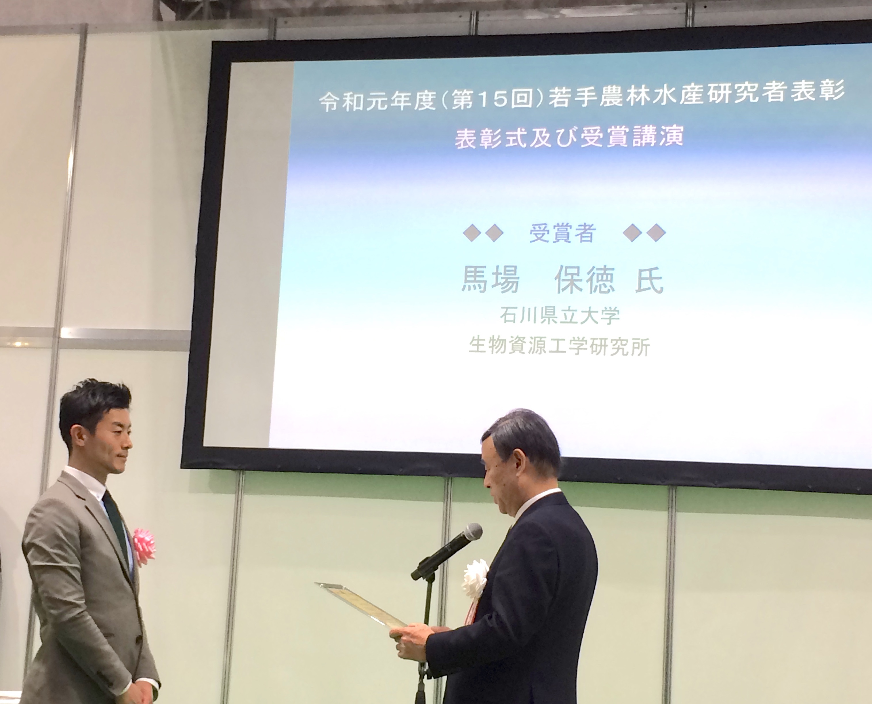 生物資源工学研究所 環境生物工学研究室の馬場保徳助教が、農林水産省農林水産技術会議から若手研究者賞を授与されました。本表彰は、農林水産業及び関連産業に関する研究開発の一層の発展及び研究開発に従事する若手研究者(40歳未満を対象)の研究意欲の一層の向上を図るため、優れた功績をあげた若手研究者を表彰し、農林水産技術会議会長賞を授与するものです。