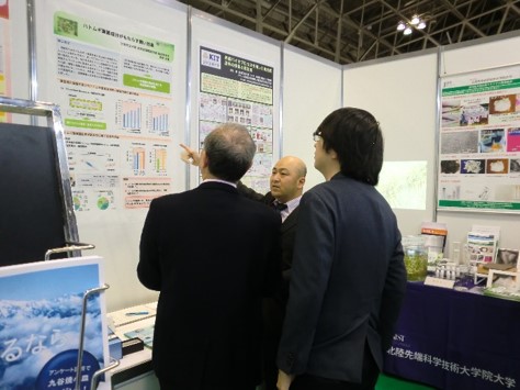 生物資源環境学部食品科学科の西本 壮吾准教授が令和2年1月20日から22日に幕張メッセで開催された化粧品開発展(主催:リード エグジビション ジャパン株式会社)に「ハトムギ葉茎成分がもたらす潤い効果」の研究成果を出展しました。ハトムギの実はハトムギ茶の原料になりますが,その葉茎には商品価値は見出されていません。西本准教授はJA能美からの依頼を受けて,ハトムギ葉茎に肌の保湿効果について研究してきました。その結果,ハトムギ茎葉抽出物が肌荒れを防ぐのに有効な皮膚の細胞内角化膜の形成に有効であること,ハトムギ茎葉の湯には肌の水分を高く保つ作用があること等を明らかにしました。この西本准教授の研究成果は、「ハトムギ葉茎に商品化の価値があることを示す」とのご意見を多くいただきました。なお,この展示は県内への企業誘致促進のための石川県商工労働部産業立地課の展示に協力したものでした。