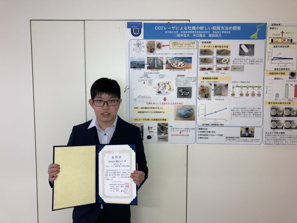 石川県立大学 > お知らせ・新着情報 > 4年生の田中玄大さんが第30回MAGDAコンファレンスで優秀ポスター賞を受賞しました。