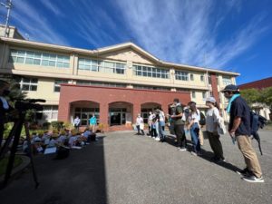 県立大学環境科学科では、「防災」をテーマに看護大学との共同研究を令和元年から行っています。今年度は、かほく市立大海小学校において、4年生17名を対象に防災授業を行いました。県立大学から教員4名と学生3名、看護大学から教員2名と学生4名が参加しました。両大学の学生が防災に関する基礎的な知識を学習し、地域の児童生徒に防災教育を行うことにより、学んだ知識の定着を図ること、さらに子供たちの防災意識の向上を図ることなどを目標としました。