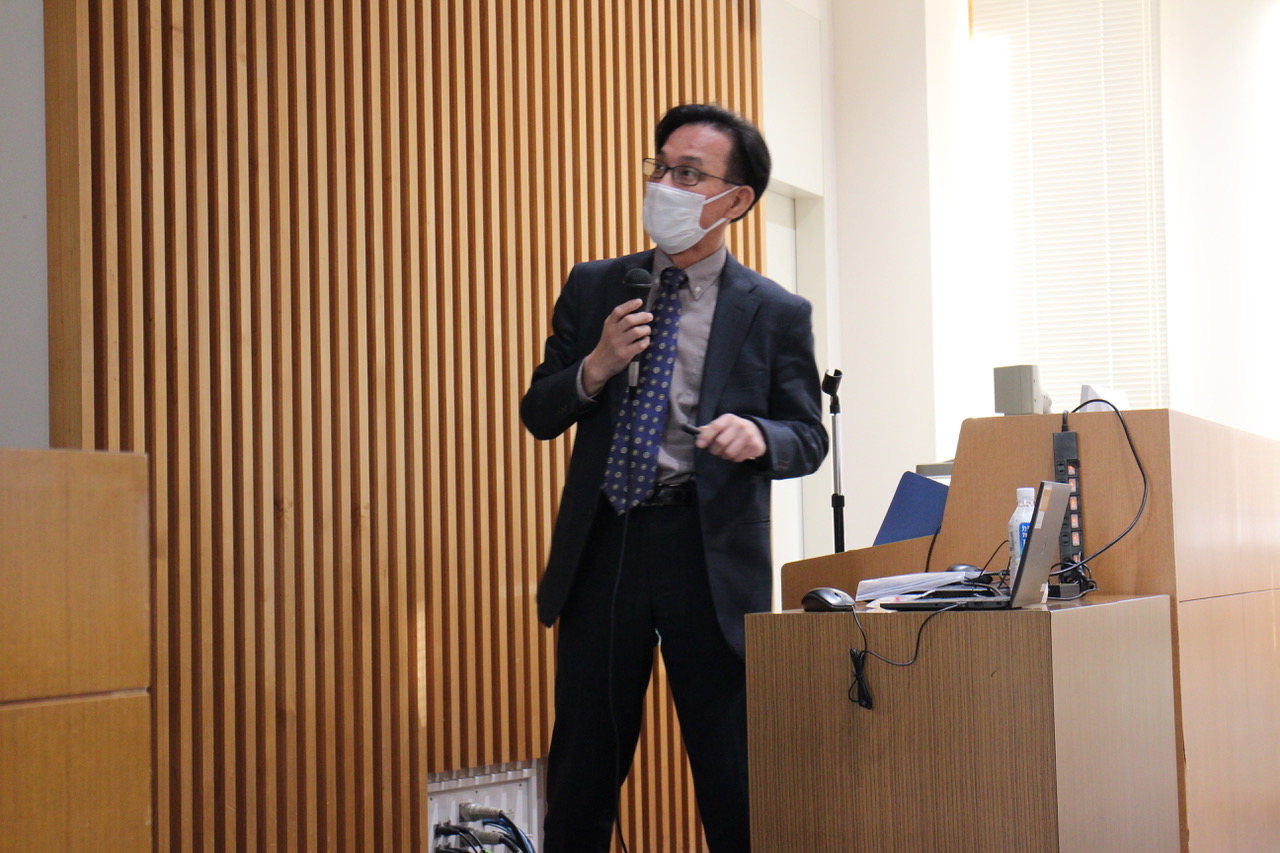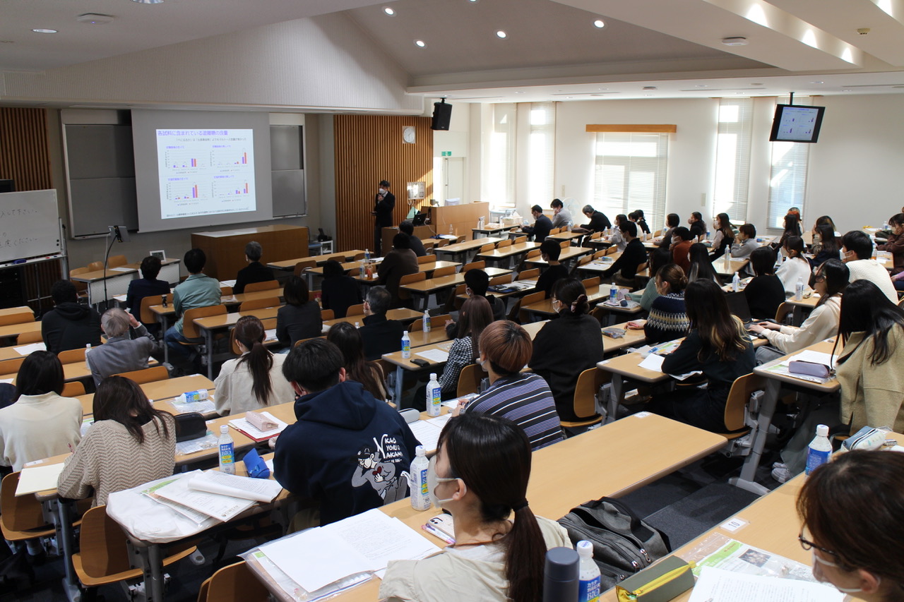 11月25日(金),本学大講義室にて第20回食品科学科公開セミナーを開催しました。当日は学内外から83名の参加がありました。招待講演として,東京大学大学院農学生命科学研究科教授・永田宏次先生から酵素の立体構造と機能について,サンエイ糖化株式会社素材開発部部長・深見健先生から糖質素材を利用した商品開発について,広島大学大学院統合生命科学研究科教授・川井清司先生から工学的アプローチによる食品開発について,最先端の研究成果をわかりやすくご講演いただきました。また,食品科学科の教員2名が研究内容を紹介しました。食品科学の基礎から応用そして実用化まで幅広い内容に触れることができ,たいへん充実したセミナーとなりました。